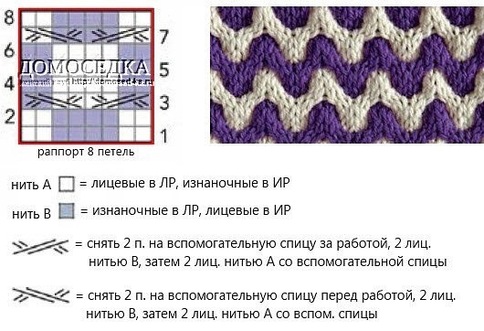 Двухцветные узоры спицами сложнее и интереснее одноцветных.