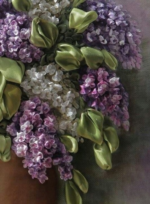 Удивительные букеты сирени из атласных лент