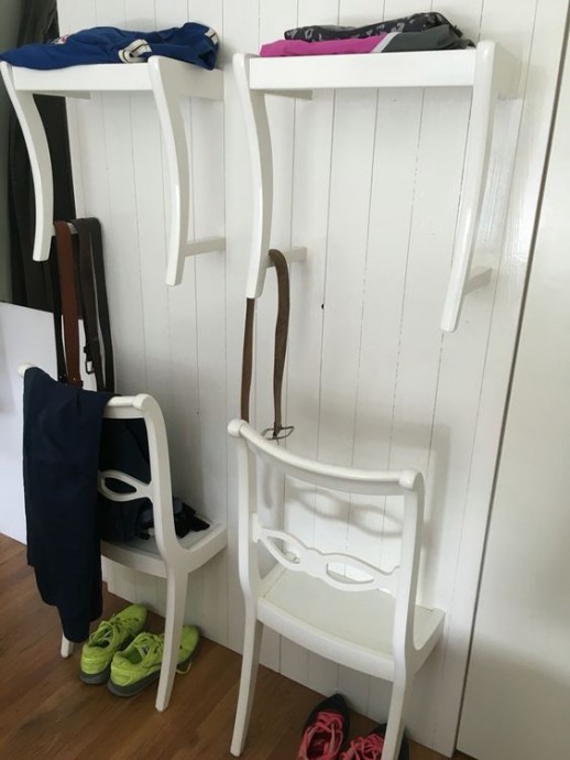 Сломанный стул может начать новую жизнь в роли оригинальной полки.