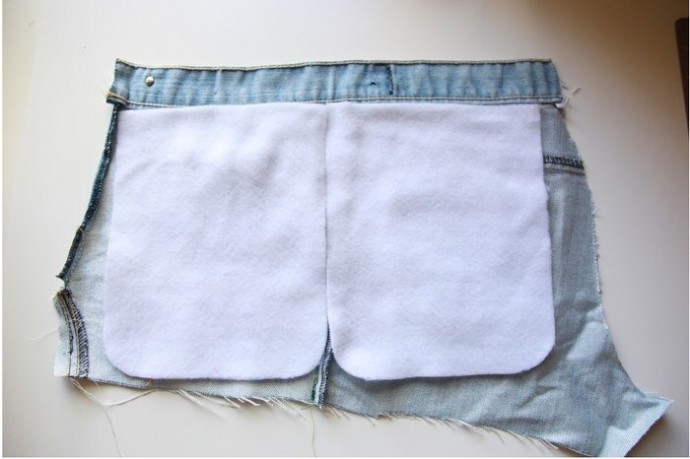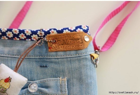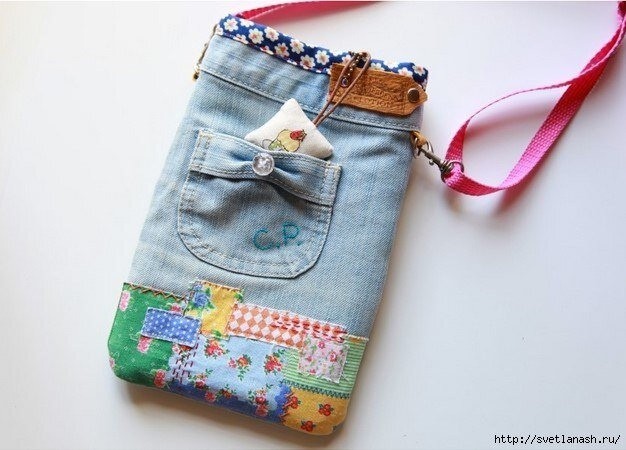 Маленькая симпатичная сумочка шьется из верхней части старых джинсов.