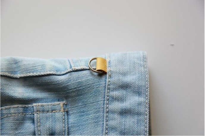 Пришиваем кусочки кожзама или кожи с колечками, в которые затем вставим ремешок для сумочки.