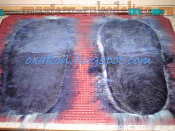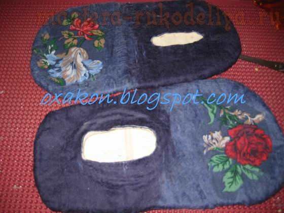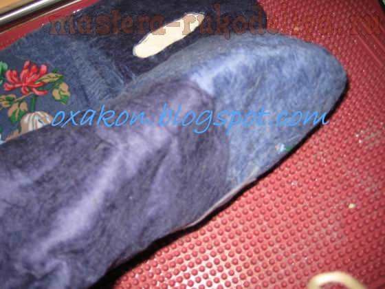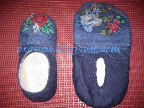 Достаем шаблоны. Тапочек уже достаточно крепкий, огромных размеров. Выворачиваем тапок наизнанку  и прорабатываем сгибы, сам тапок изнутри.
