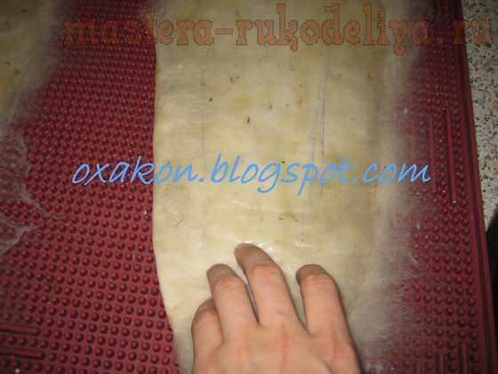 Загибаем краешки ,которые торчат из-за шаблона (припуски), стараясь, чтобы не было резких складок.