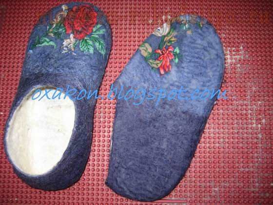 Свалять тапочки не так трудно, как может показаться, хотя и достаточно физически тяжеловато. Однако - результат того стоит.