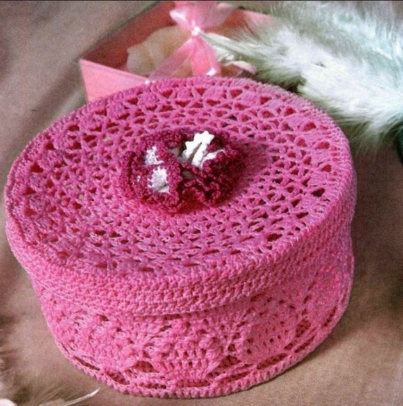 Вязаная шкатулка создана, конечно же, не для хранения мелочей, которые из нее просто высыпятся.