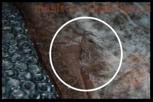 Периодически разворачиваем рулон и смотрим на шарф. Вытаскивать его можно, когда наши волокна уже не двигаются,когда мы проводим по ним пальцами. Шерстинки не должны подниматься, если вы за них тяните.