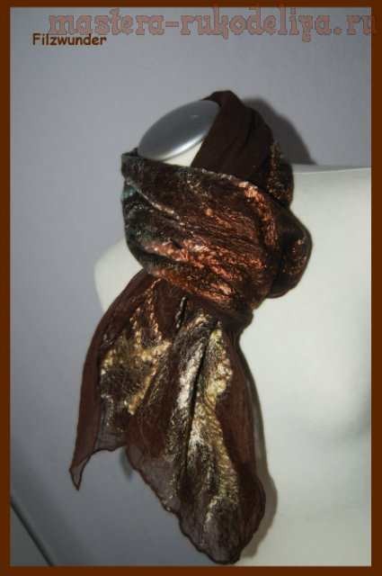 Убираем лишнюю воду. Опять через многострадальную сеточку выпитываем ее полотенцем. Шарф должeн быть мокрым, но не "болотом".