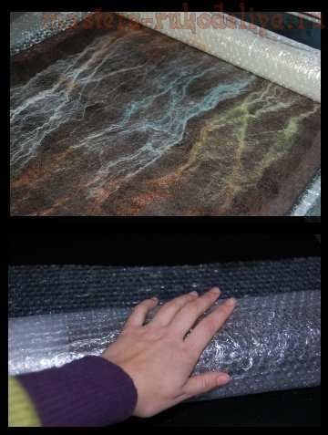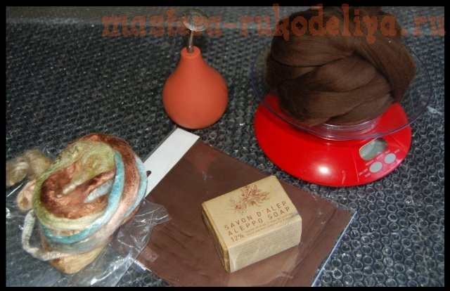 - Стандартный набор валяльщика: пленка,вода,мыло,полотенце,чем поливать изделие,сеточка(пленка).