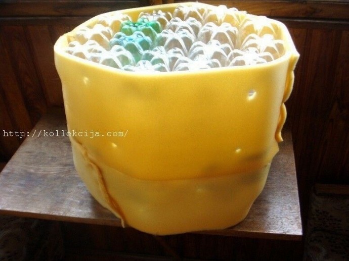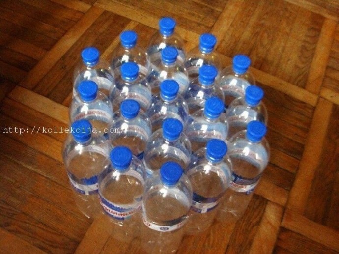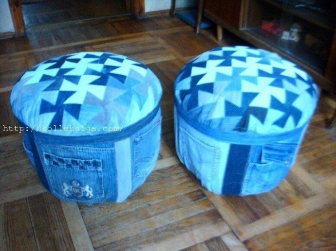 Джинсовый пуфик создан на основе обычных одноразовых пластиковых бутылок.