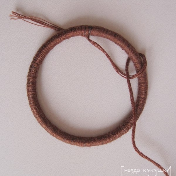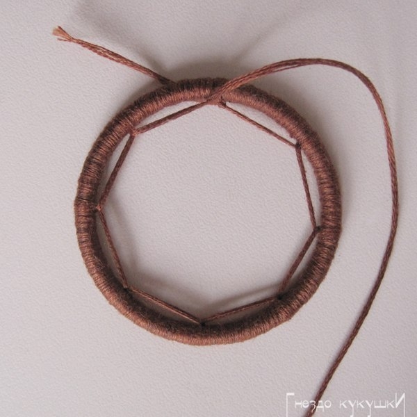Нежный ловец сновХочу дать небольшой мастер- класс по плетению узора для «Ловца снов».Его можно использовать как для основного круга, так и для маленьких подвесных основ.Я сделала ...