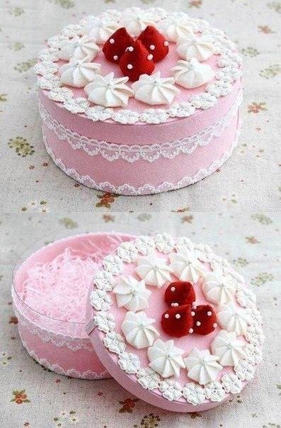 Шкатулка в виде тортика может быть как упаковкой подарка, так и местом хранения рукодельных мелочей.