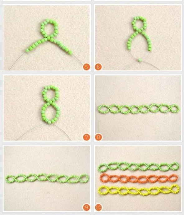 Трехцветный браслет из бисера