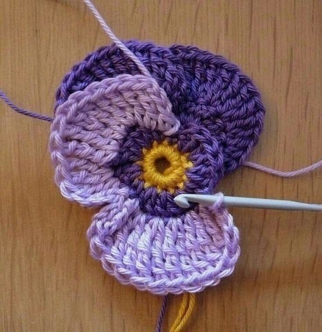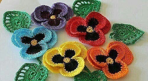 Анютины глазки отдельно порадуют возможностью выбрать для них любые цвета пряжи.