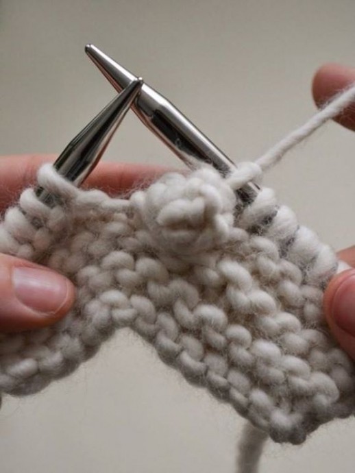 Мы покажем вам, как вязать шишечки с помощью пяти петель и платочной вязки.