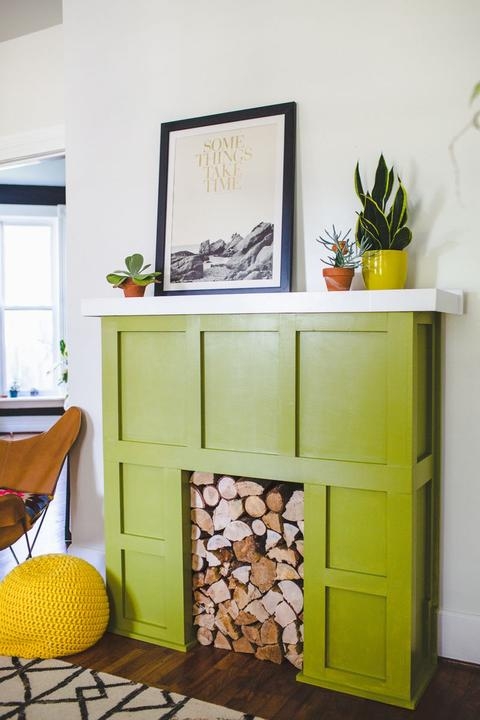Фальш-камин для домаОбклейте обями в виде кирпичной кладки для правдоподобности.