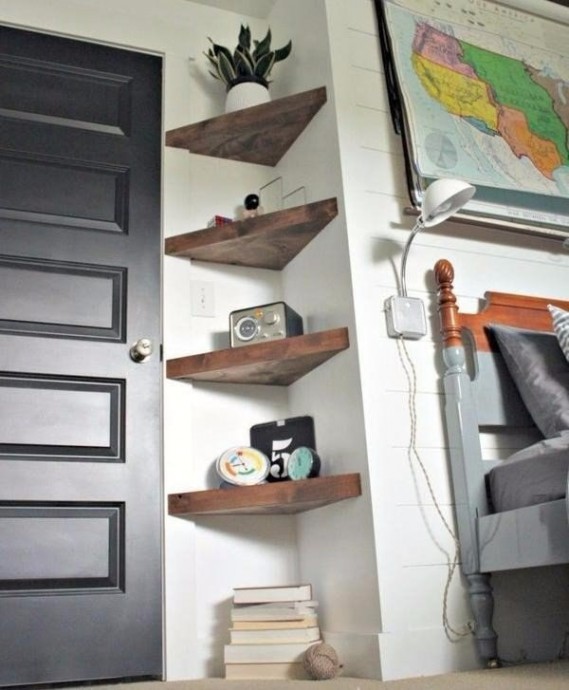Угловые полочки отличное решение для помещений, где места не много, но углы пустуют.