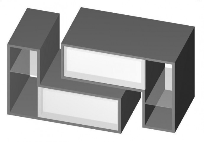 Журнальный стол-тумба состоит из двух одинаковых половинок, которые перевернуты относительно друг друга.