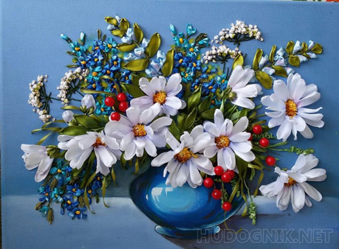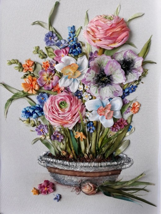 Можно снова и снова бесконечно любоваться на цветы, вышитые лентами, и восхищаться, что многие из них неотличны от живых.