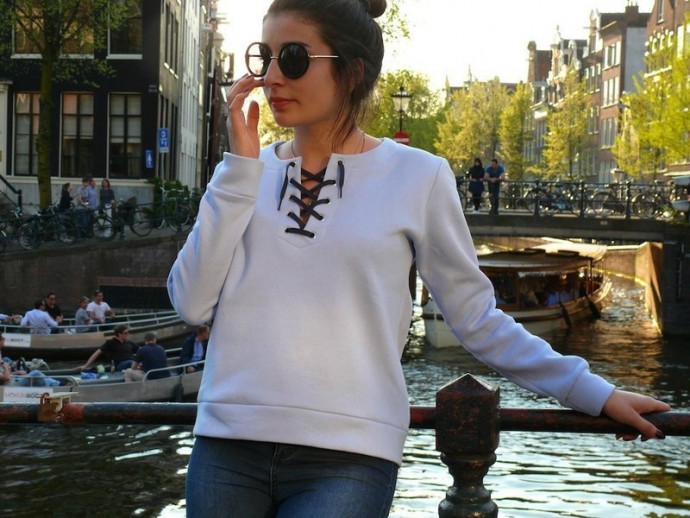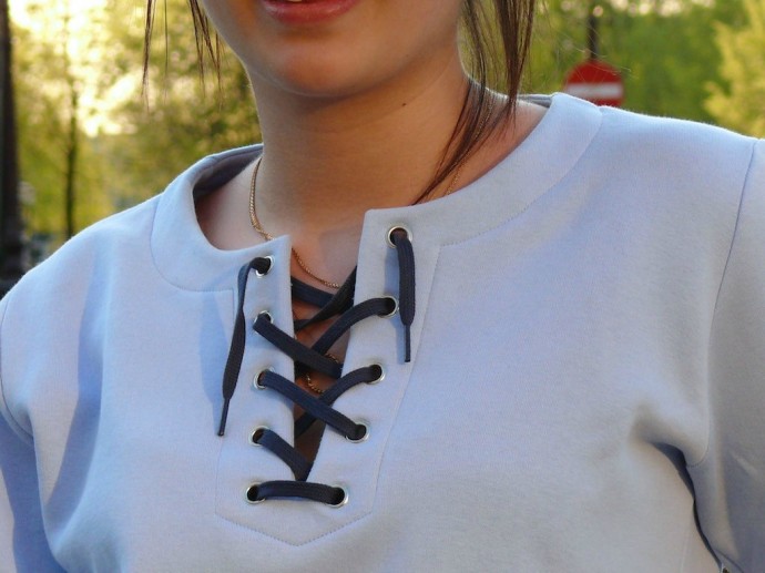 Горловина на шнуровке выглядит не только красиво, но и по-женски игриво.