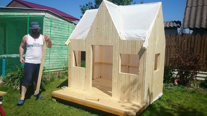 Если у вас есть место на даче или во дворе частного дома, то можно сделать там деревянный домик для детских игр.