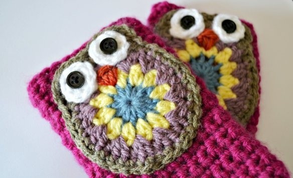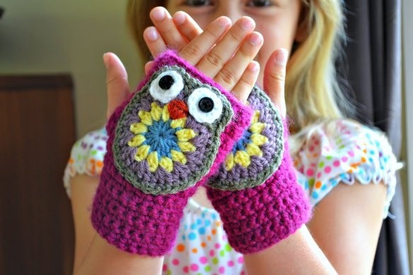 Забавные митенки с совами в более ярком варианте однозначно для детей.