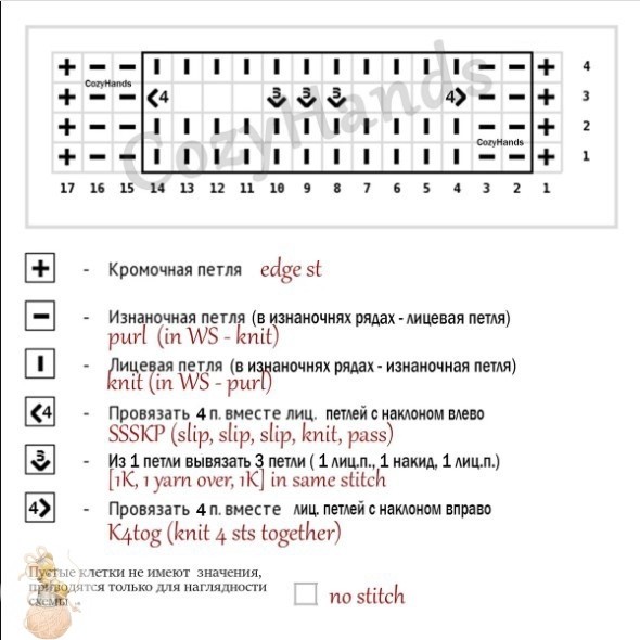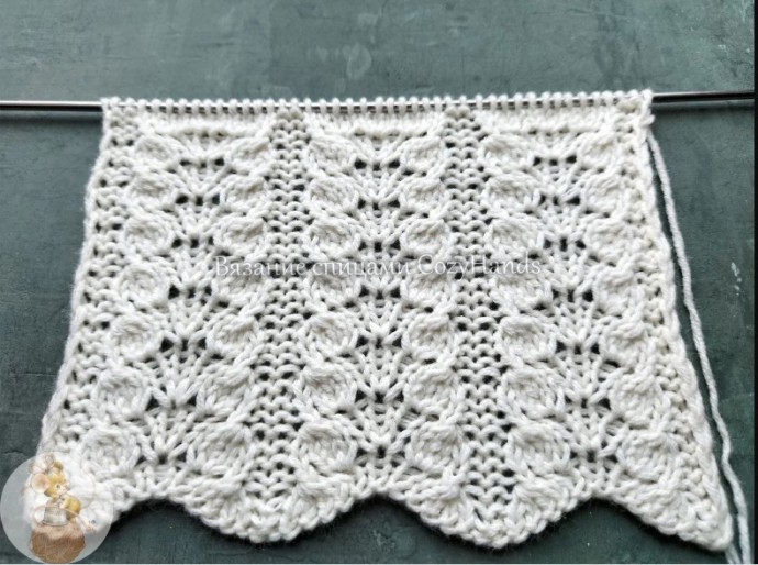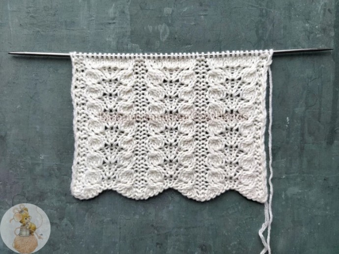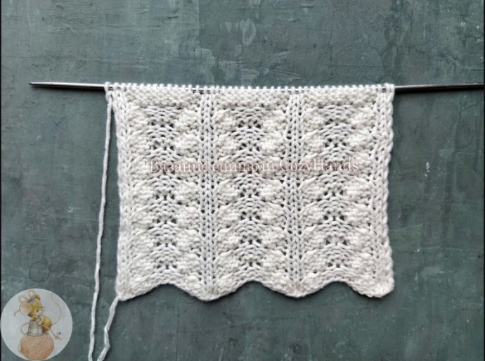 Рaппоpт узоpa cоcтоит из 13 пeтeль и 4 pядов.