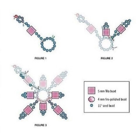 Тила это бисер, который имеет форму прямоугольника размером 5*5*1,9 мм и два параллельных отверстия 0,8 мм. Он ровный, края не острые, при работе не перетрет рабочую нить.