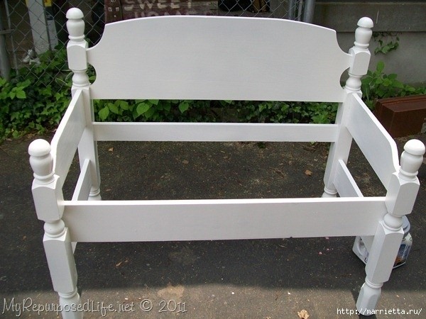 Если детская кроватка потеряла свою актуальность, то сделайте из нее садовое кресло и будьте счастливы.