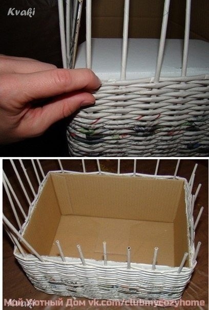 В мастер-классе ниже подробно показано, как крутить трубочки и оплетать коробку.