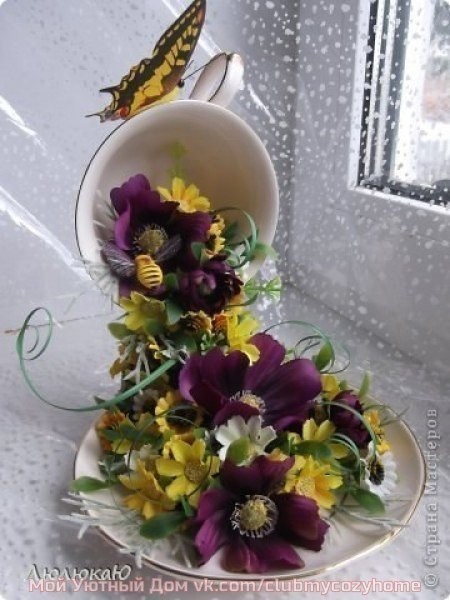 С бабочкой или без бабочки, из искусственных цветов или из сухоцветов - в любом варианте цветочные водопады очаровательно оживляют пространство, в котором находятся.