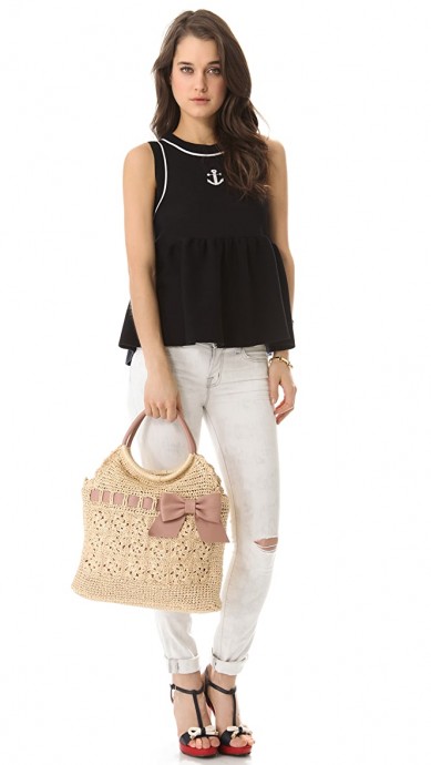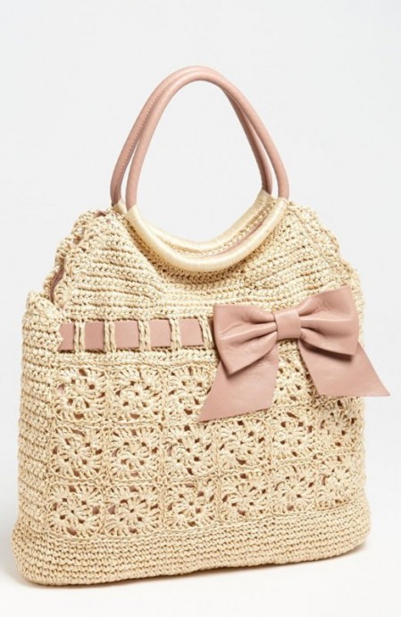 Летняя ажурная сумка с бантиком выглядит очень нежно и романтично и при этом довольно вместительная.