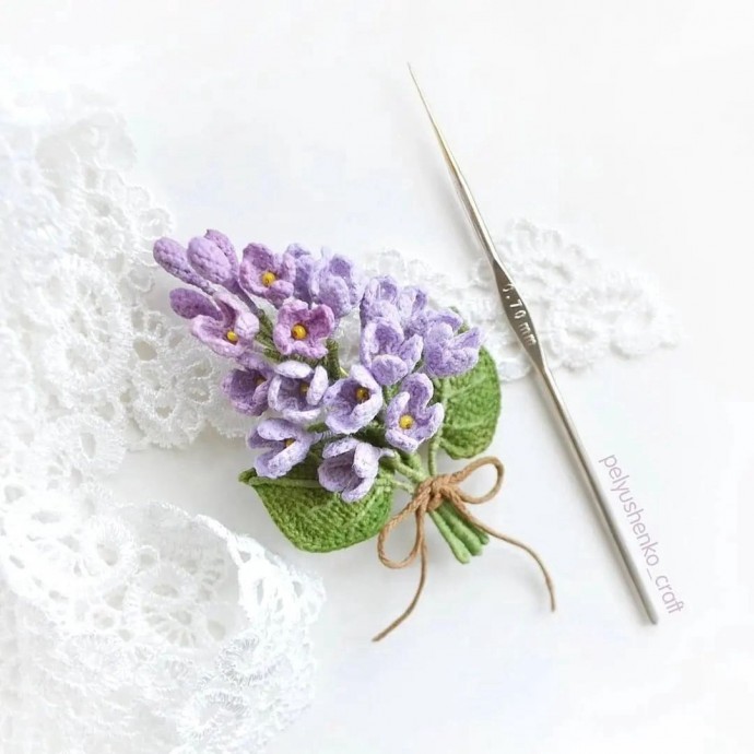 Вяжем сиреньМилые маленькие букеты приятно дарить подругам на любые праздники.
