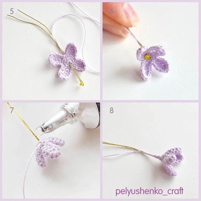 Сирень из пряжиВозьмите самый тонкий крючок.Вязать миниатюрную сирень можно даже из ниток.