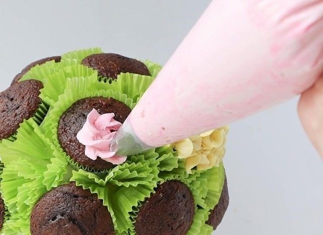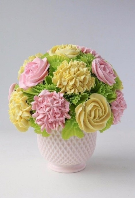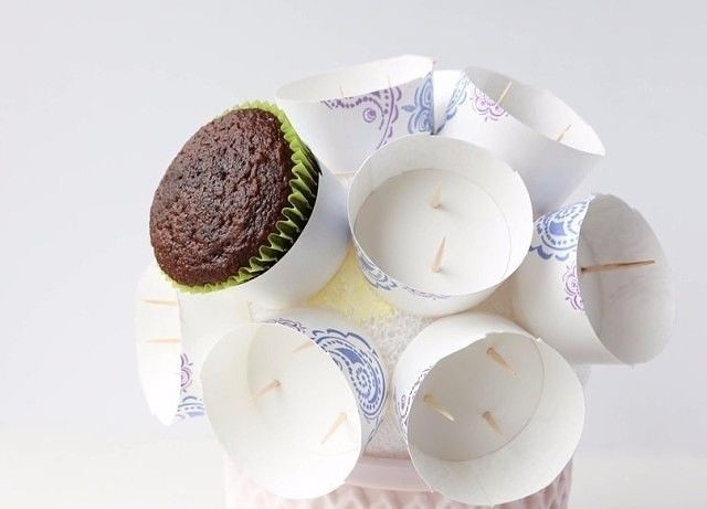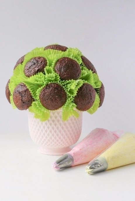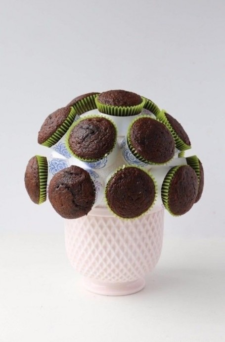 Вкусный букет делается из капкейков, чтобы подать их более оригинально.