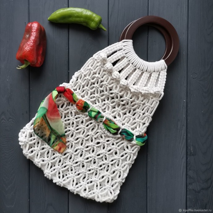Сумка в технике макрамеСумка в технике макраме одинаково хороша как зимой, так и летом,потому что не боится ни морозов, ни солнца.В идеале стоит сделать влагонепроницаемую подкладк...