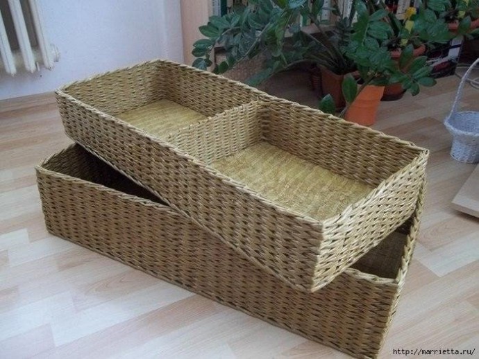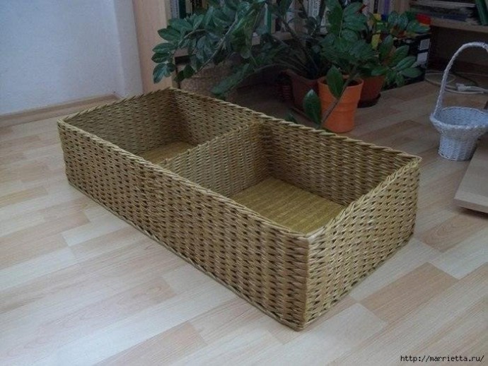 Плетем корзинку из газетных трубочек на два отделения, чтобы в ней можно было хранить разные виды предметов.