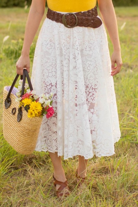 Лёгкая ажурная юбка быстро шьётся из кружевной скатерти.