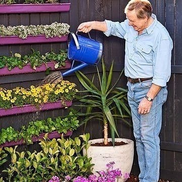 Вертикальный цветник из водосточных труб, впрочем, может быть выполнен из любых пластиковых труб достаточного диаметра.
