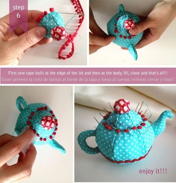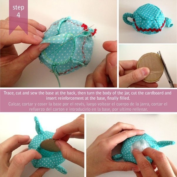 Игольница-чайникНабиваем игольницу синтепоном или холофайбером.