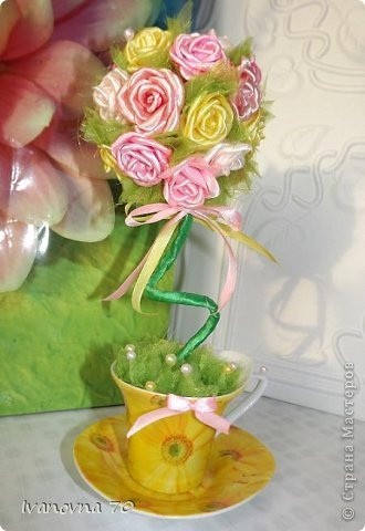 Топиарий из атласных роз это вечноцветущее деревце, сделанное собственными руками.