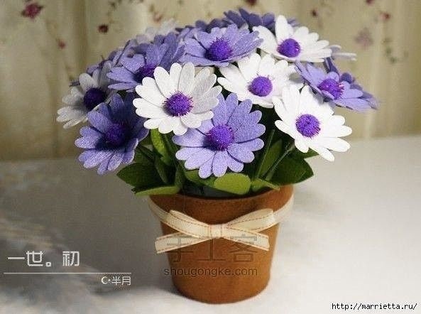 Горшочек с цветами из фетра это букет, созданный весьма необычным способом.