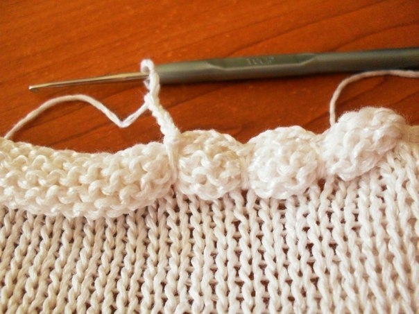 МОЖНО ПО НИЖНЕМУ КРАЮ В УГЛУБЛЕНИЯХ МЕЖДУ "ШИШЕЧКАМИ" ПРИШИТЬ БЕЛЫЙ ЖЕМЧУГ КРУПНЫЙ ИЛИ МЕЛКИЙ.