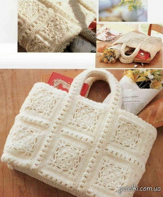 Летняя сумка из квадратных мотивов нуждается, конечно же во влагонепроницаемой подкладке.