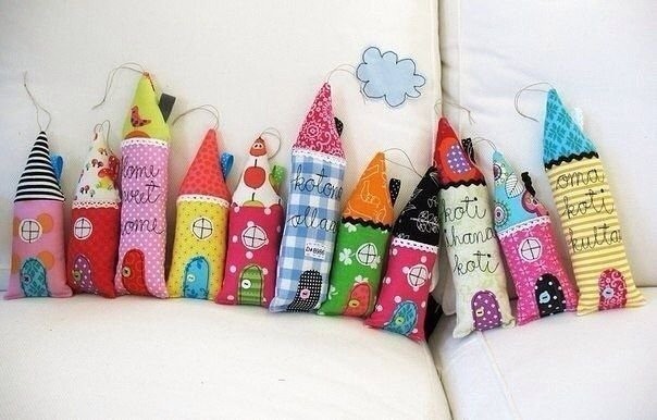 Подушки-домикиВ зависимости от того, какие домики вы придумаете - эти подушки могут располагаться как в детской, так и в зале.