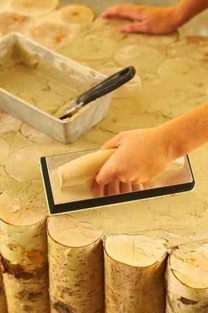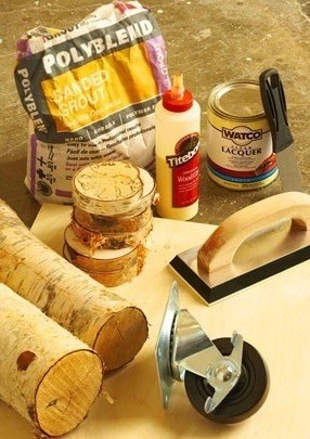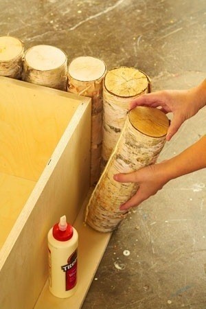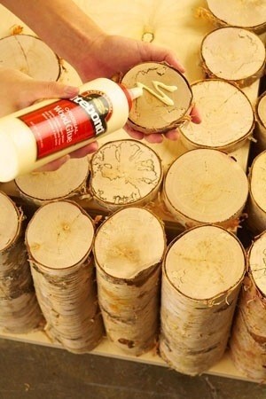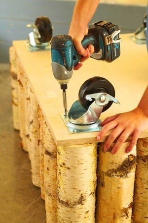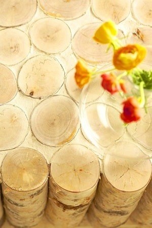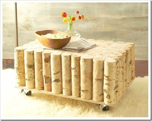 Столик в эко-стиле своими руками делается из неотёсанных березовых бревен.