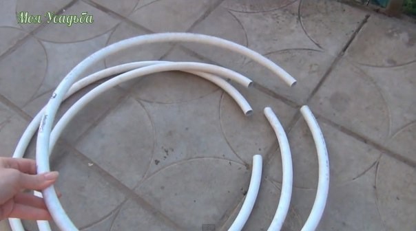 Разделите кольца и затем соедините их с помощью заранее подготовленных обрезков садового шланга.