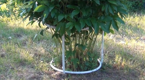Подставка готова, осталось надеть её на куст. Для этого соберите куст и зафиксируйте с помощью бечёвки. Затем можно будет спокойно надет подставку и убрать бечёвку.
