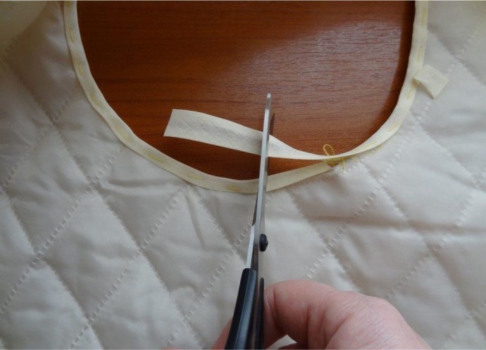 2. Отрезать излишки косой бейки так, чтобы нахлест одного конца на другой был примерно 2 см.