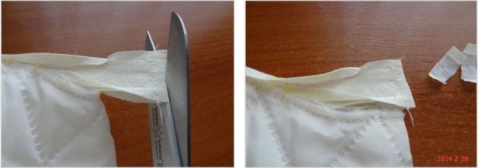 5. Обрезать припуски на расстоянии приблизительно 5 мм от строчки.