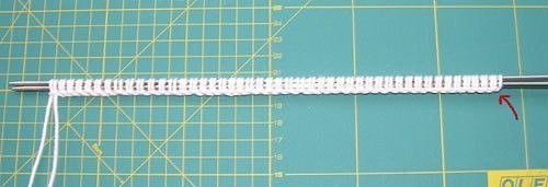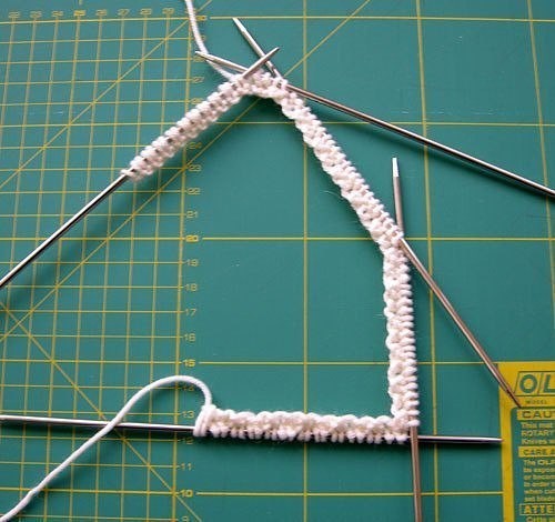 12.Пятый ряд полой резинки провязываем аналогично третьему ряду.